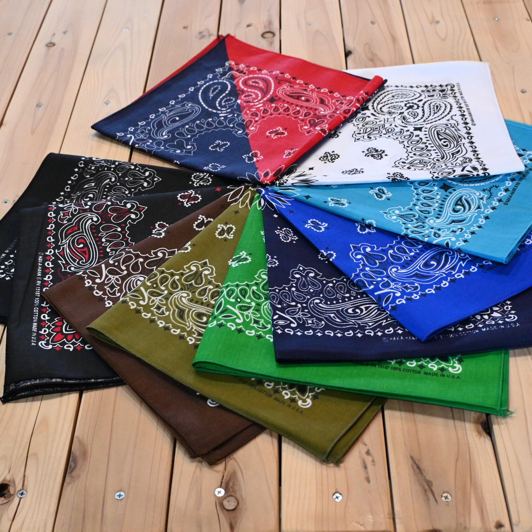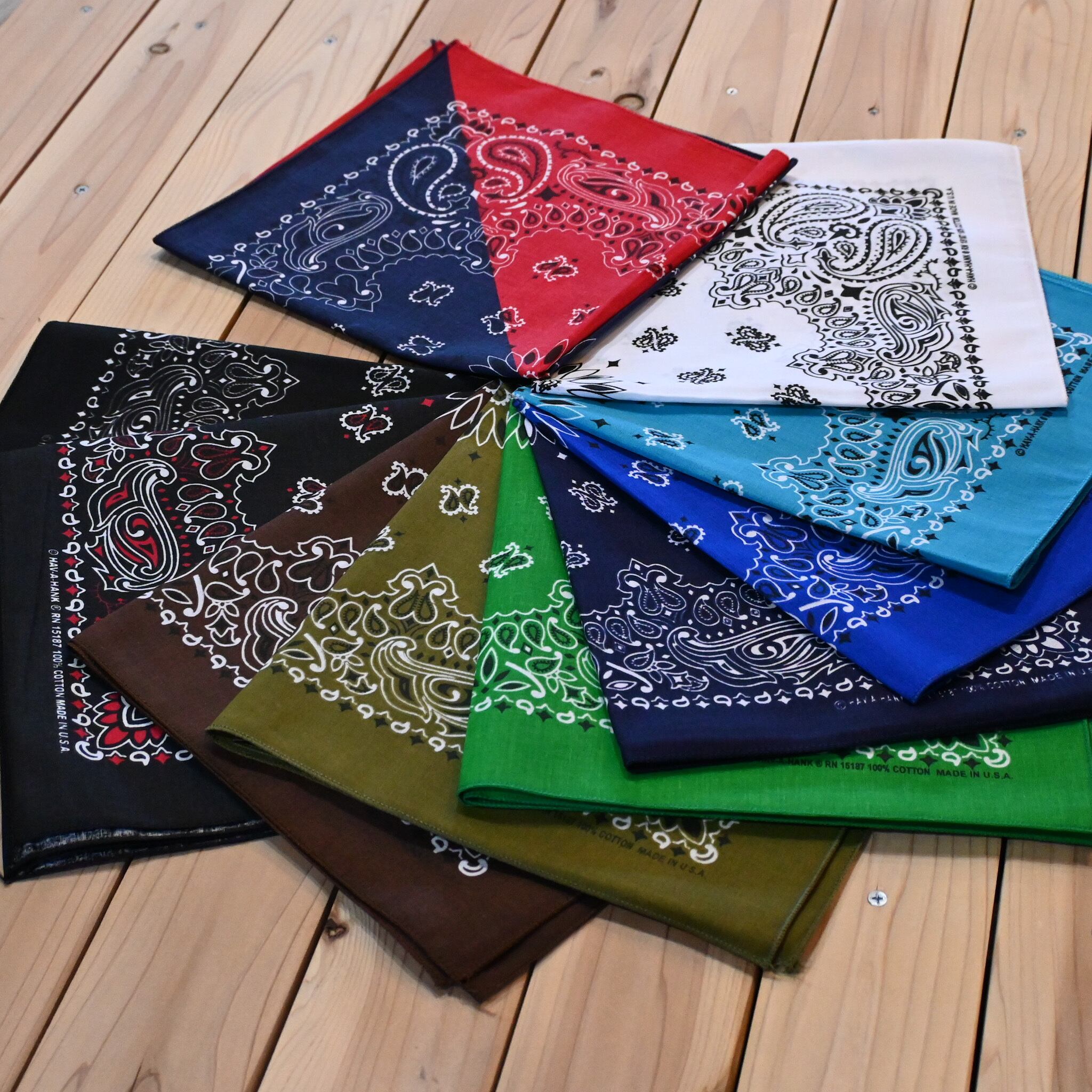 クラシックなペイズリー柄が映える、王道バンダナ。